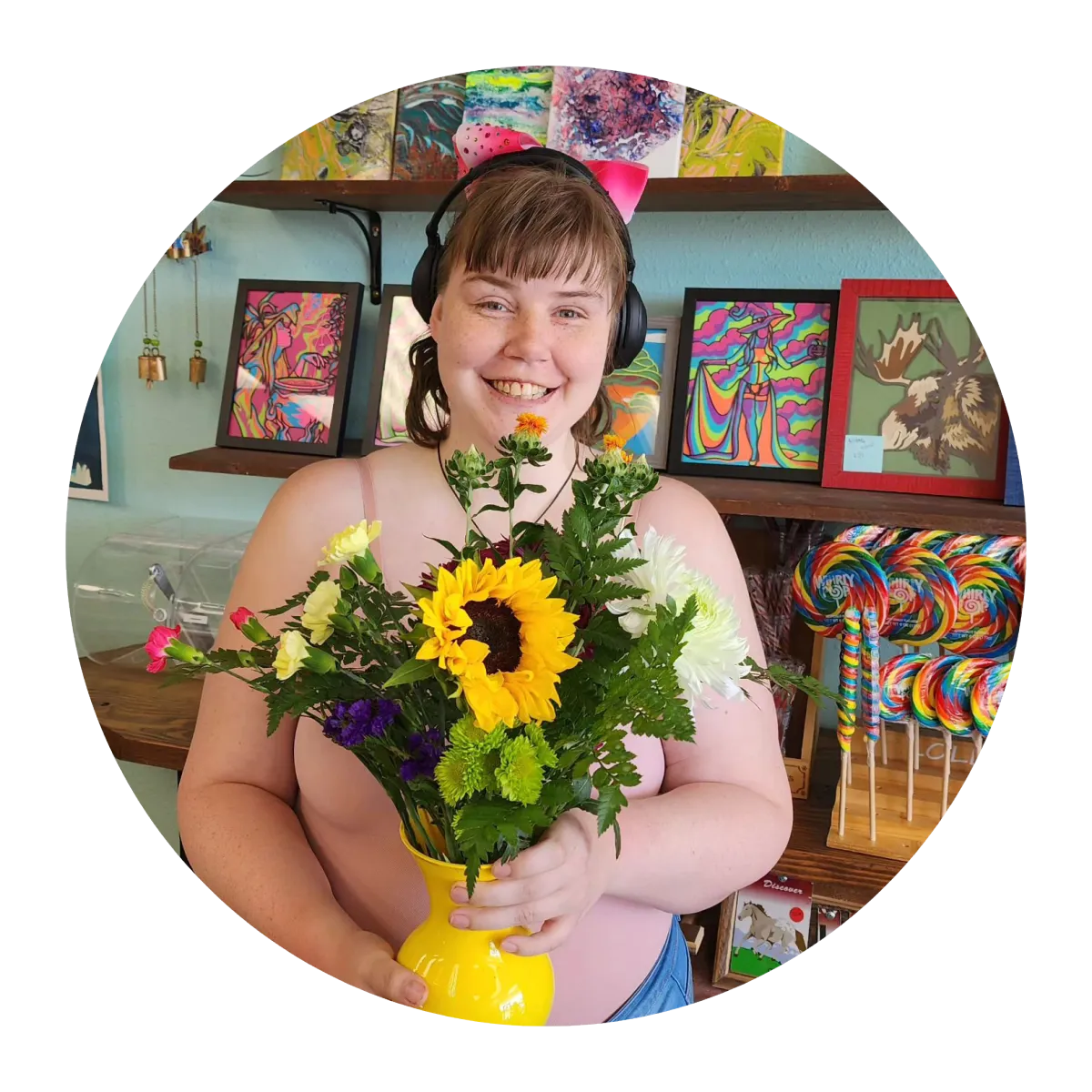Our employees and our pal Ace himself proudly craft our handmade flower arrangements. Ace discovered his hobby during the pandemic. he used his newfound skills to share a little joy with friends and family. With the help of his passionate mom, Arlene, we've all been learning the new skill of floral arrangements! We're so thankful for Ace and Arlene's partnership and excited to share it with the Treasure Valley.